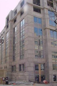This project consists of 55,000 SF of Custom Curtain Wall and Punch Windows, 10,000 SF of custom inverted vault Skylight and 15,000 SF of formed aluminum plate Custom Bronze Doors and frames. Donald Deister was the project manager on this project which was completed in June 2002.